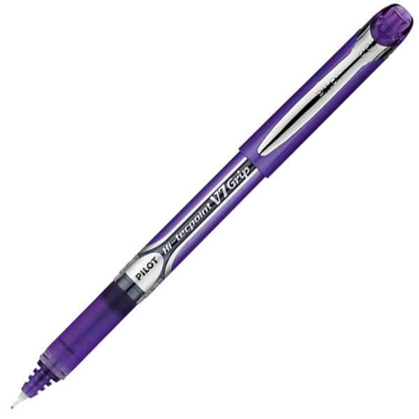 The Pilot V7 Hi Tecpoint Grip liquid ink rollerball pen is an updated version of the V5 High Tecpoint. With a soft rubber comfort grip, the fine 0.7 mm needlepoint tip writes smooth 0.4 mm lines. It’s controlled ink flow technology lets you write smooth and for long.