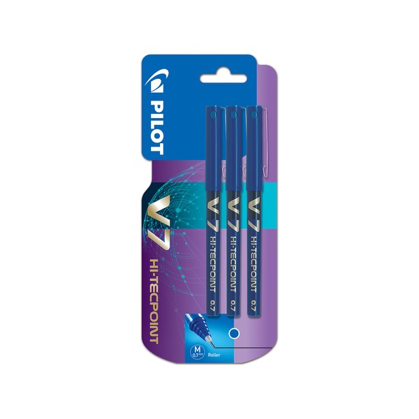 Pilot V7 Hi-Tecpoint Rollerball Pen, 0.7 mm Tip - Blue, Pack of 3.
