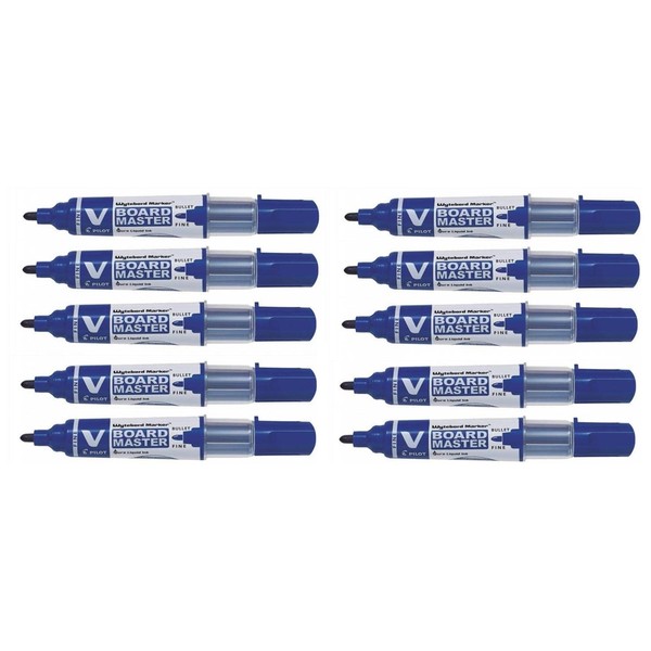 Pilot Vboard Master Dry-Wipe Whiteboard Markers – Bullet Tip – Pack of 10 blue