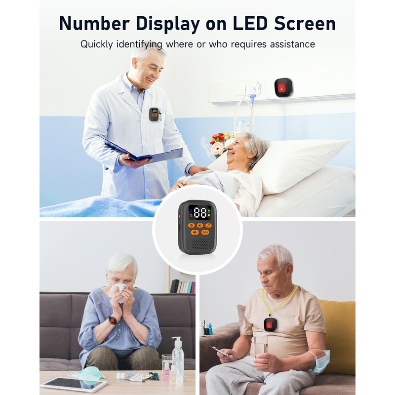 - Number Display on LED Screen: This life alert systems for seniors no monthly fee includes 1 caregiver pager, 1 wireless call button & 1 wrist watch button. Each button shows a unique number on pager screen for quick ID, enhancing safety & convenience