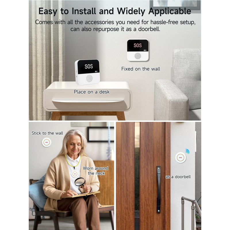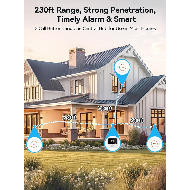- Pre-paired and Perfect Gifts: Three panic buttons come ready to use. Just connect the HUB to Wi-Fi. Wear it, wall-mount, or place on a table. Ideal for elderly assistance products or nurse call systems, and a perfect gift for elderly women and men