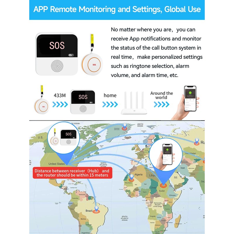 - Selectable Ringtones and Adjustable Volumes: Eighteen ringtones and four volume levels are available; You can set different ringtones and names for each emergency button for elderly in the app, which helps you quickly know who is asking for help