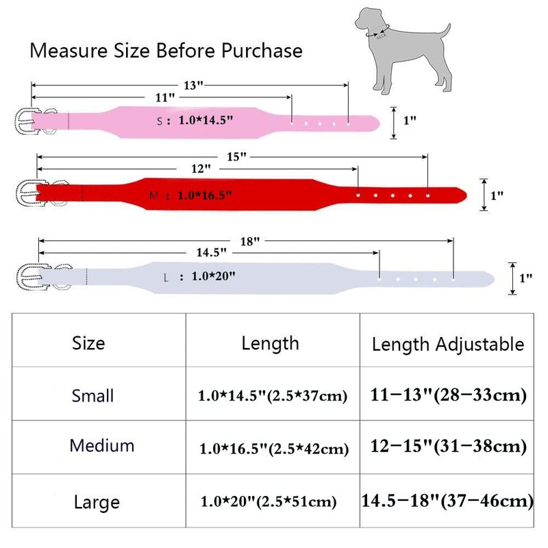 - Size: (5 holes adjustable) S: Overall length 1.0*14.5"(2.5*37cm), Neck:11-13"(28-33cm).M: Overall length 1.0*16.5"(2.5*42cm), Neck: 12-15"(31-38cm).L: Overall length 1.0*20"(2.5*51cm), Neck: 14.5-18"(37-46cm).
