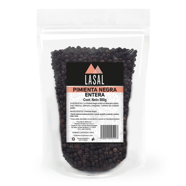 Pimienta negra entera 500 Gramos Pouch Resellable Lasal