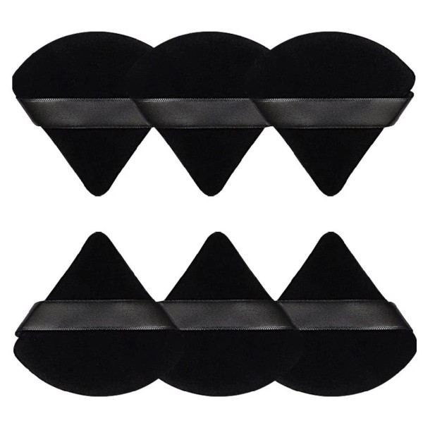 Pimoys 6Pcs Triangle Makeup Puff Set Velour Sponge Black