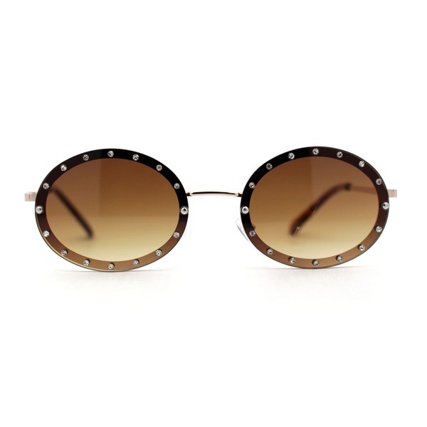 Pimp Rhinestone Frame Oval Rimless Metal Rim Sunglasses Gold Brown