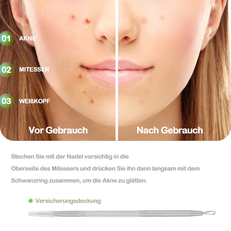 For added protection, our pimple needle tool comes with a tip cover. It is not recommended to use the device for acne that is not yet fully mature. This ensures that you do not injure your skin unnecessarily and that you achieve the best result.