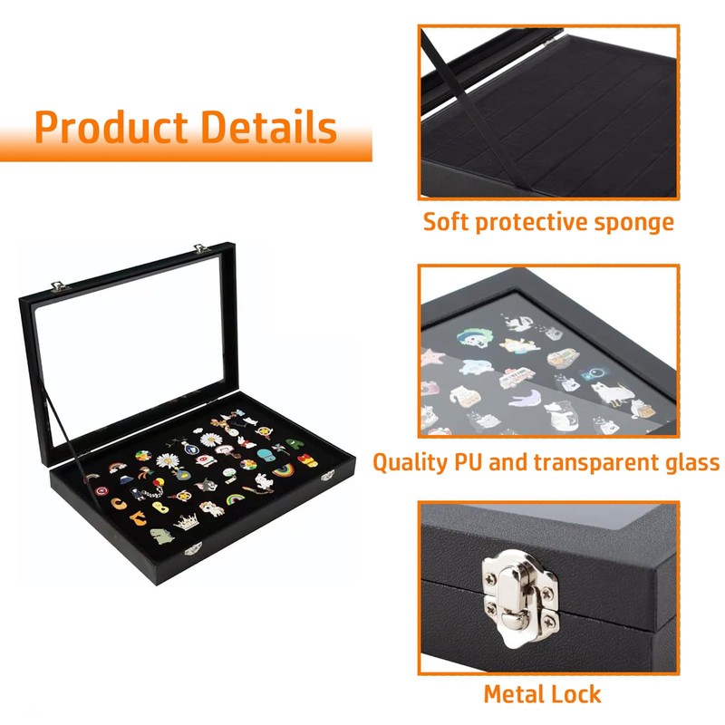 【Top Transparent Window】The pin collector storage is equipped with a transparent glass cover, which can clearly show your stored badges, jewelry, and comes with a lid to keep your items clean and dust-free.