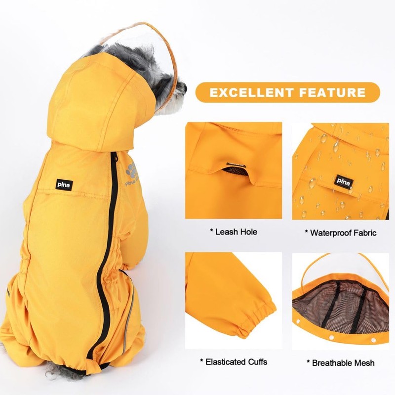 - Waterproof & Comfortable: Crafted from premium soft fabric, PINA dog raincoat is waterproof, windproof and impermeable. The 100% polyester fibre material ensures the dog rain jacket remain lightweight and breathable, providing all-day dryness for your dog