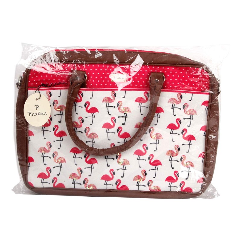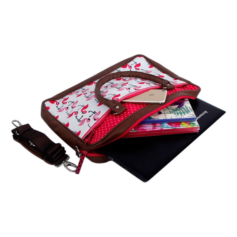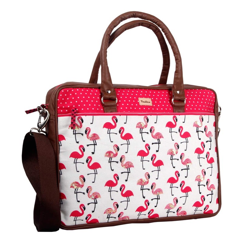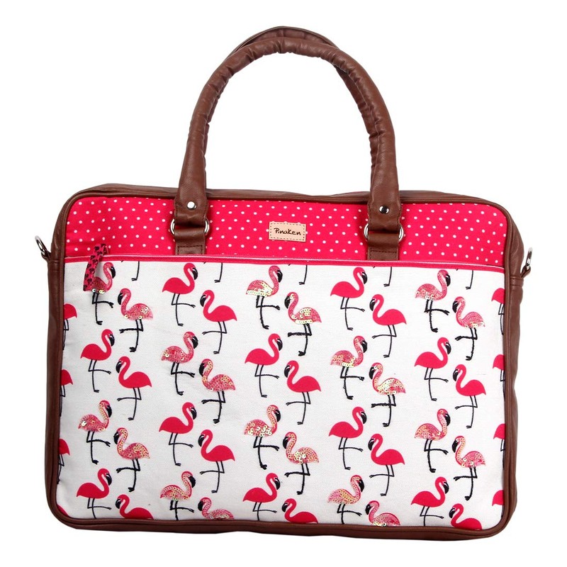 Pinaken Handcraft Printed Canvas Vegan Leather Flemingo Blush Large Laptop Bag