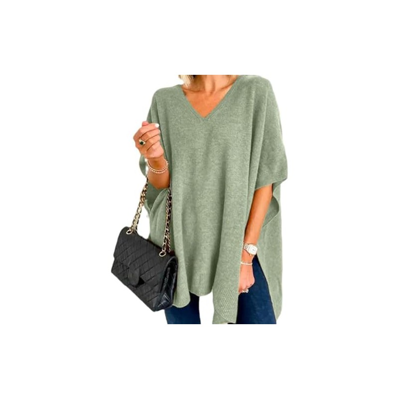 Pinclodly Sweater Vest Women Short Batwing Sleeve Fall Sweaters Loose V Neck Wool Sweater High Low Hem Poncho Sweaters 2025 Green