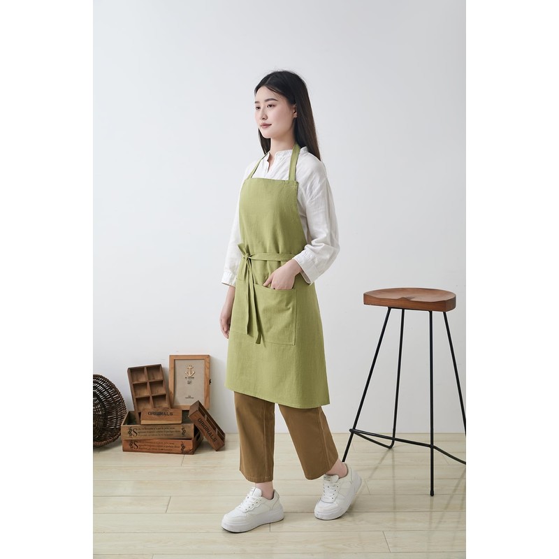 Pincy Cotton Linen Apron for Women - Adjustable Casual Apron with Pocktes, Great for Florist, Coffee House and Kitchen (Green)