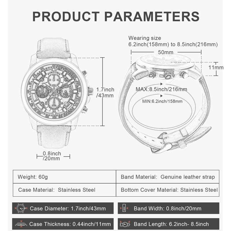 The luxurious leather strap not only adds a touch of class but also guarantees a comfortable fit throughout the day. Whether you're searching for men's leather watches or sporty men chronograph watches, this timepiece meets every need. Gift it to yourself or surprise friends and family with a stylish and practical choice for birthdays, Father's Day, and more. Elevate your accessory game with PINDOWS—the ultimate in luxury men's watches.