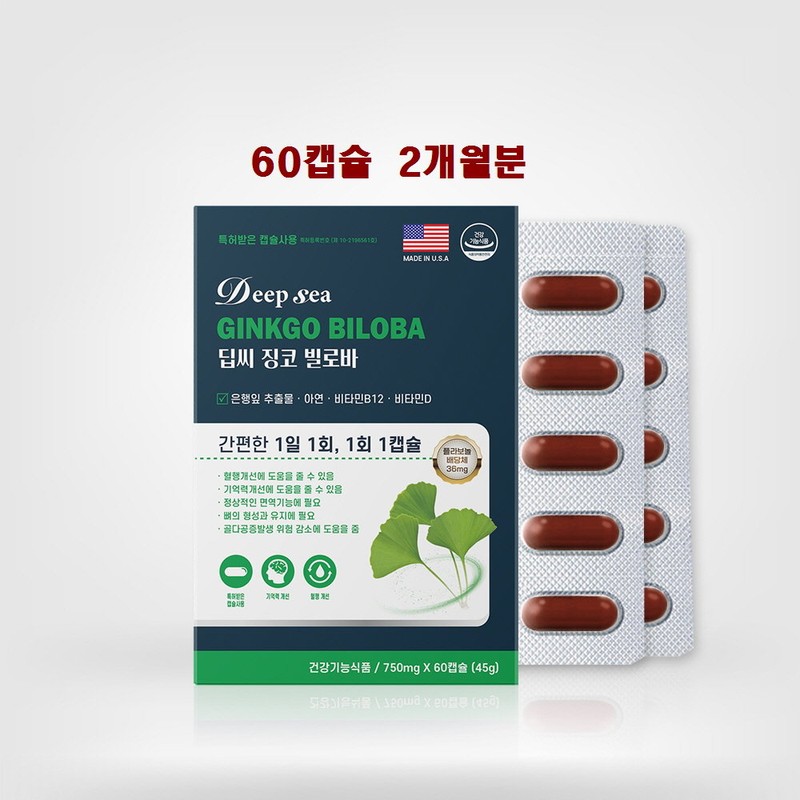 Pine bark extract, ginkgo, ginkgo leaf, memory, blood circulation improvement nutritional supplement, 60 capsules / 소나무껍질추출물 징코 은행잎 기억력 혈행개선 영양제 효능 60캡슐