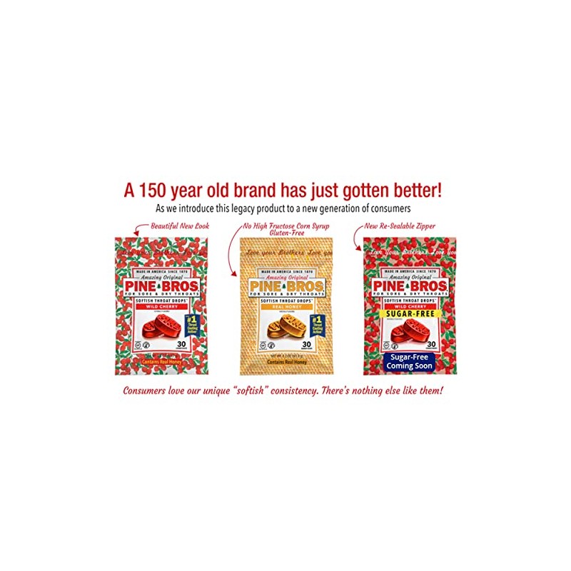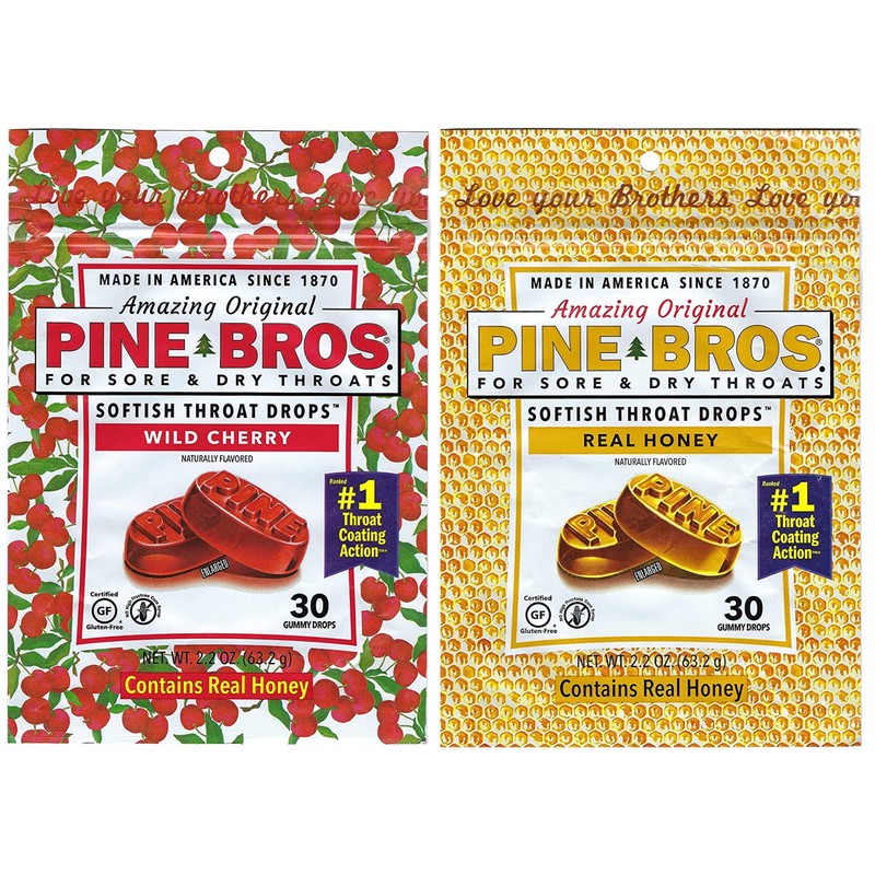 Pine Bros. Bundle-Two Flavors Softish Throat Drops, Natural Honey 30 Ct / Wild Cherry 30 Ct