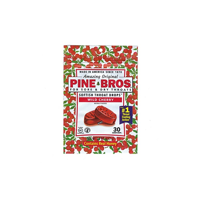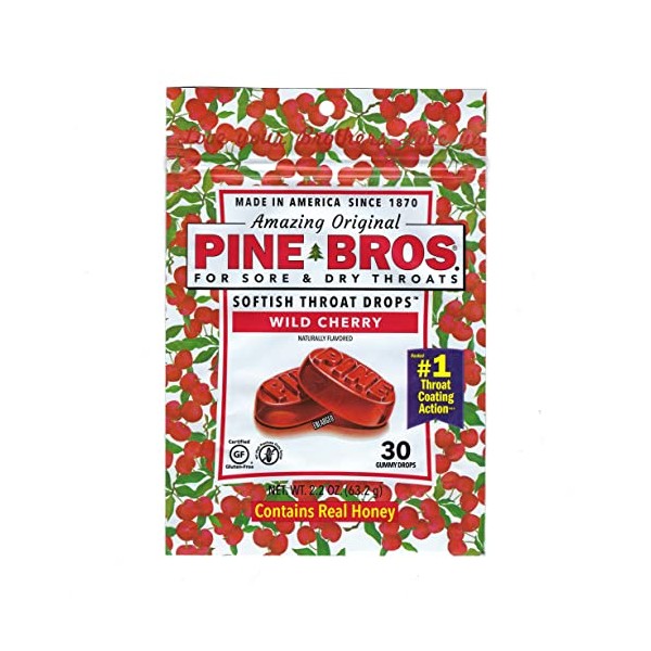 Pine Bros. Gummy Sore Throat Softish Drops 30 Count (Wild Cherry)