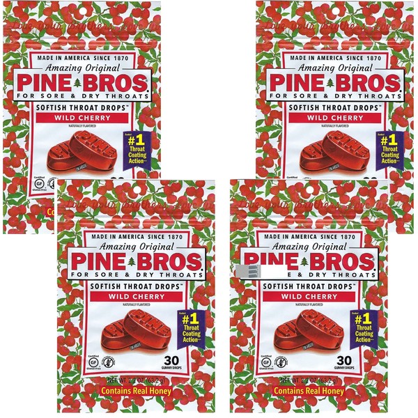 Pine Bros. Softish Throat Drops Wild Cherry - 30 count, Pack of 4