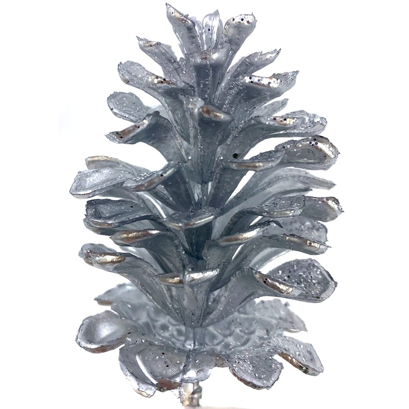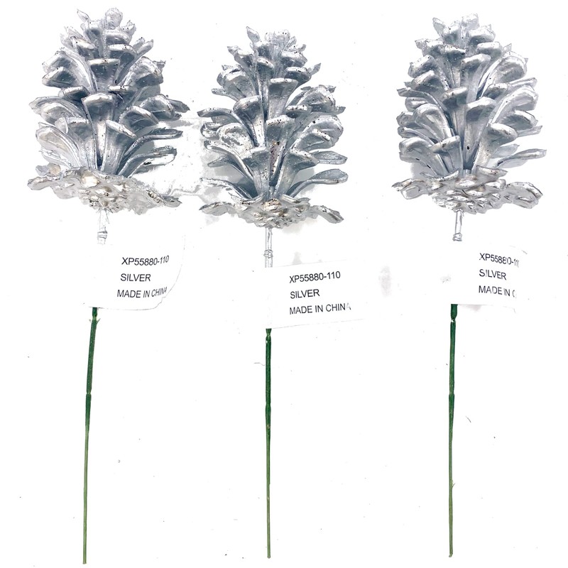 Pine Cone Pick Ornaments for Christmas Tree, Centerpiece, Garland, Holiday Décor, Set of 3 Silver