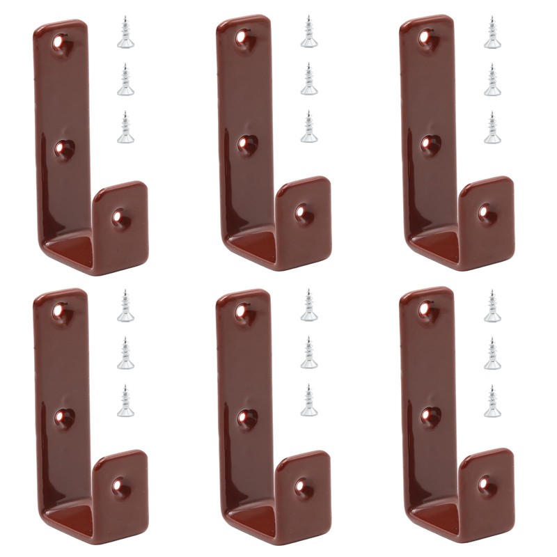 PINE & LINEN 6 Pack Durable Bunk Bed Ladder Hooks, Heavy Duty Hook Brackets PVC Coated Utility Hooks, Unique Design J Hook for Campers RV(Brown)