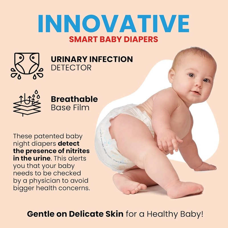 - INNOVATIVE BABY PRODUCT: These baby diapers detect the presence of nitrite in the urine and warn you in time of possible health problems caused by urinary tract infections.