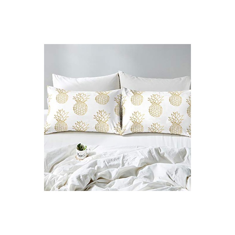 Pineapple Bed Sheet Set Golden Pineapple Pattern Fitted Sheet Tropical Fruit Printed Bedding Set Kids Boys Girls Teens White Bed Cover Bedroom Decor 3Pcs Full Size,Hypoallergenic