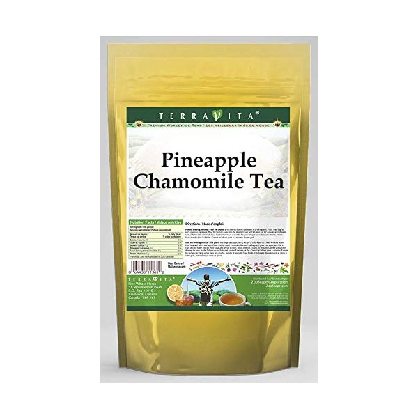 Our Pineapple Chamomile Tea is a delicious flavored Chamomile tea with Pineapple that you will enjoy relaxing with anytime! - Ingredients: Chamomile tea, Pineapple and natural pineapple flavor. - Hot tea brewing method: Bring freshly drawn cold water to a rolling boil. Place 1 teabag for each desired cup into the teapot. Pour the boiling water into the pot, cover and let steep for 2-4 minutes. Pour into your cup; add milk and natural sweeteners to taste. - Iced tea brewing method: (to make 1 liter/quart): Place 5 teabags into a teapot or heat resistant pitcher. Pour 1 1/4 cups of freshly boiled water over the teabags. Steep for 5 minutes. Quarter fill a serving pitcher with cold water. Pour the tea into the serving pitcher. Add ice and top-up with cold water. Garnish and sweeten to taste. - TerraVita is an exclusive line of premium-quality, natural source products that use only the finest, purest and most potent ingredients found around the world. TerraVita is hallmarked by the highest possible standards of purity, potency, stability and freshness. All of our products are prepared with the highest elements of quality control, from raw materials through the entire manufacturing process, up to and including the moment that the bottles or bags are sealed for freshness and shipped out to you. Our highest possible standards are certified by independent laboratories and backed by our personal guarantee. - TerraVita exists to meet and ensure your family's health and wellness without the harmful effects or chemicals and prescription medications. We strive to make all of our products affordable and reliable and are constantly searching the market to maintain our affordability and to look for new ways to serve you and the ones you love. TerraVita has become a trusted household