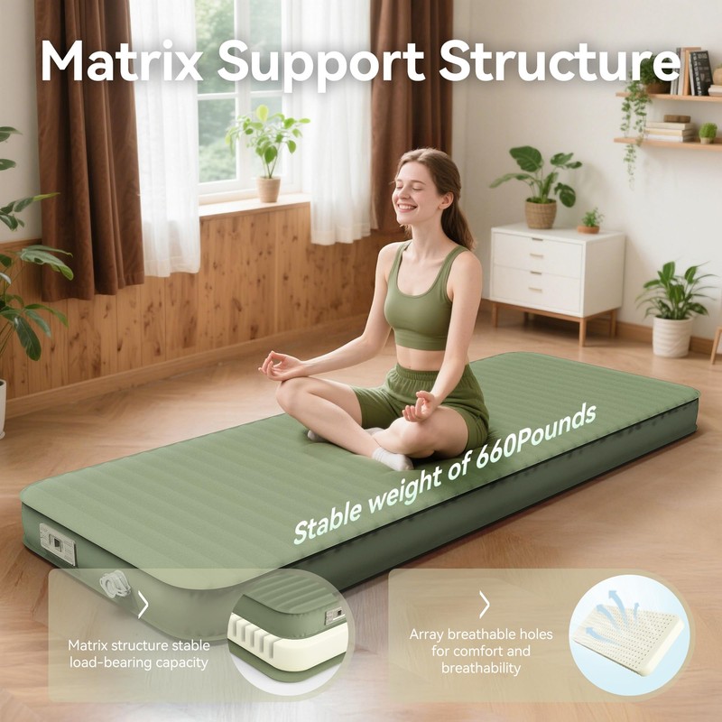 - Perfect for Various Outdoor Activities --This camping sleeping pad bed weighs 6.6 pounds and load capacity: up to 660 lbs.Whether you’re camping, beach tirp, or using it as a sleeping mat in a tent and car or indoor home use, this camping air mattress is a great addition to your camping essentials, providing comfort and stability for a good night’s sleep