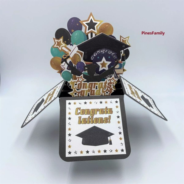 PinesFamily S03-Graduation Card | 3D Pop up Graduation Box Card | Surprise & Congratulation