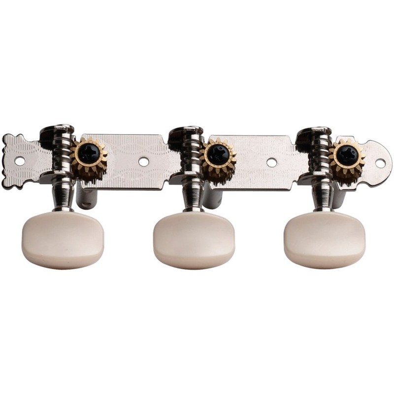 • Inexpensive ping guitar machines with double drilled shafts for verical or horizontal mounting. nickel-plated, open gears, and plastic oblong buttons.