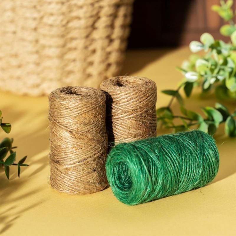- Natürliche Materialien: Die Gartenschnur auf einer Spule besteht aus Jute-Pflanzenfasern, die stark und langlebig genug sind, um Dehnung, Biegen und Reibung zwischen Seilen standzuhalten. Im Vergleich zu anderen Fasern ist Jute-Schnur widerstandsfähiger gegen Sonnenlicht und weniger wahrscheinlich, dass sie verblassen oder sich verschlechtern.