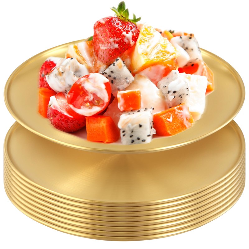 - HIGH QUALITY MATERIALS - These gold stainless steel dinner plates are made of high quality materials, providing a plastic-free alternative for a healthier dining experience.