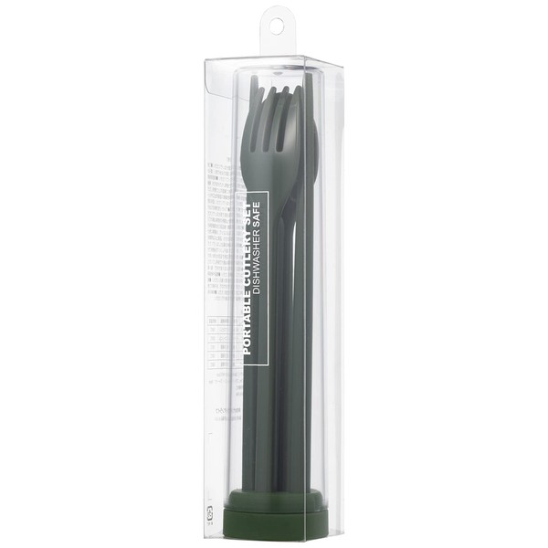 PINGTO 263065 Flatware Set, Bento Dishwasher-safe, Spoon, Fork, Chopsticks, 3-Piece Set, Portable, Khaki, Green