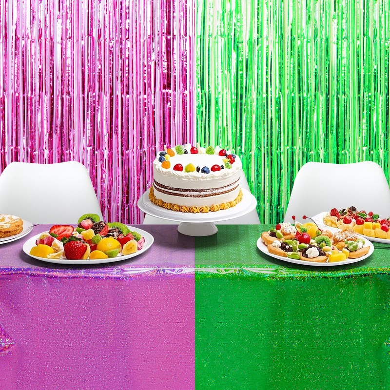 - Wide Application: Our green and pink birthday decoration set is perfect for sparkly themed parties, such as birthday celebrations or witch themed events. The foil tinsel curtain can be used together with the tablecloth for a cohesive look, or separately to let your creativity shine. This pink and green set is sure to become a popular photo spot for guests at your party.