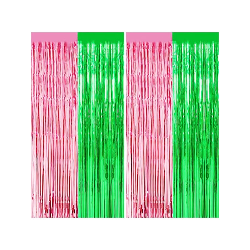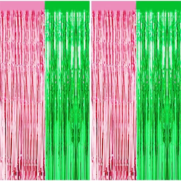 - Vibrant Pink & Green Design : Features eye-catching wavy tinsel foil fringe in playful pink and green, creating a dazzling backdrop for parties and photo booths.