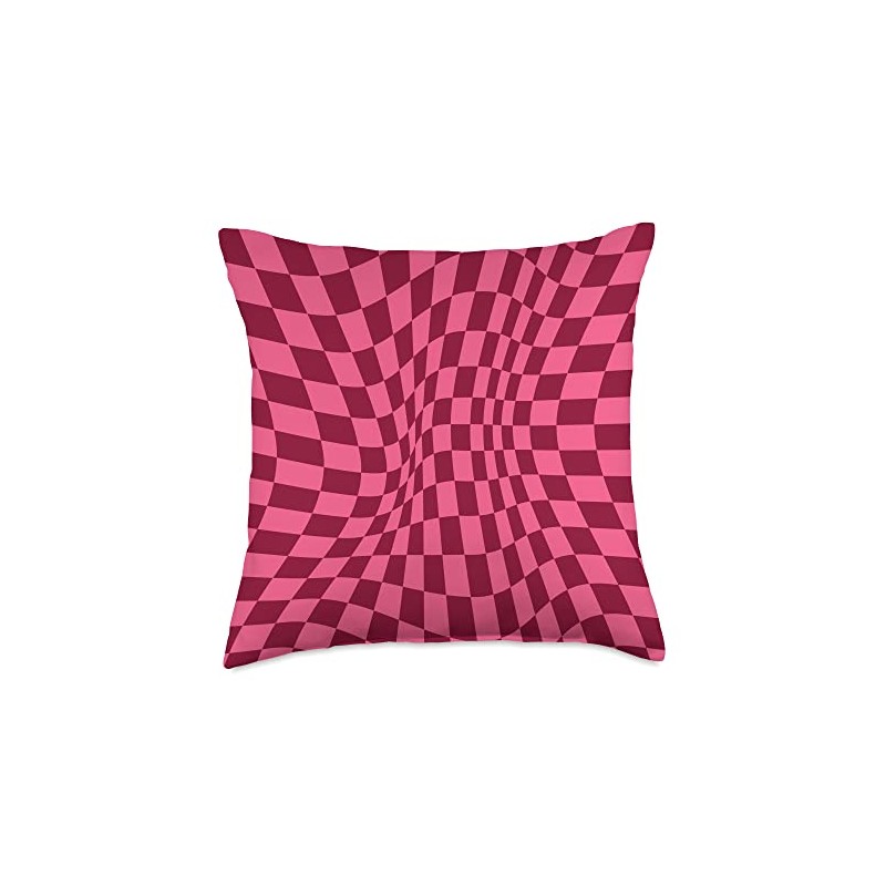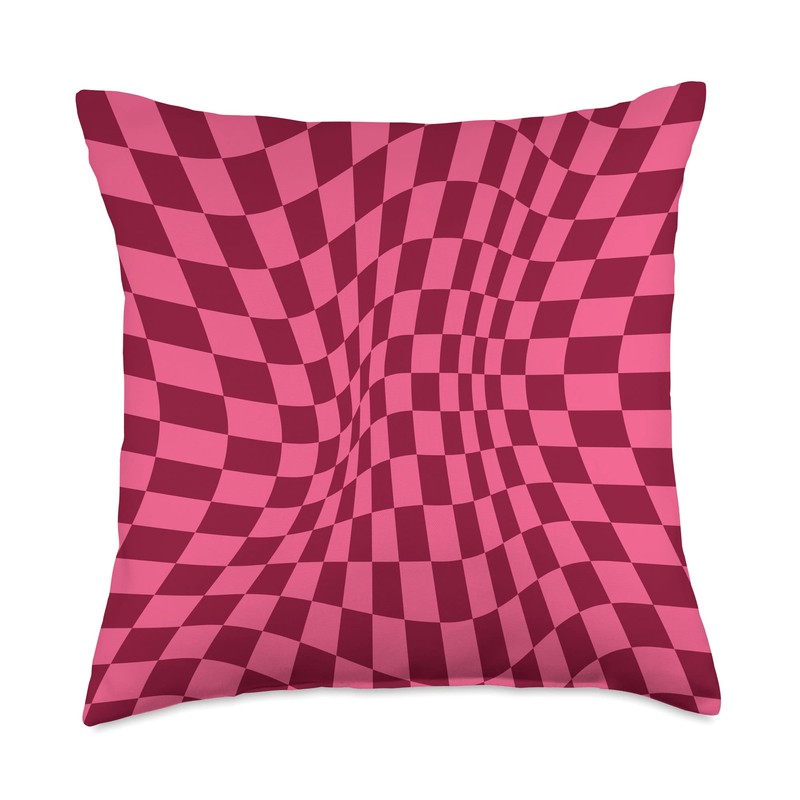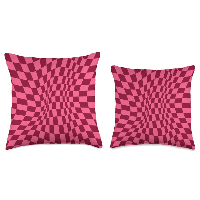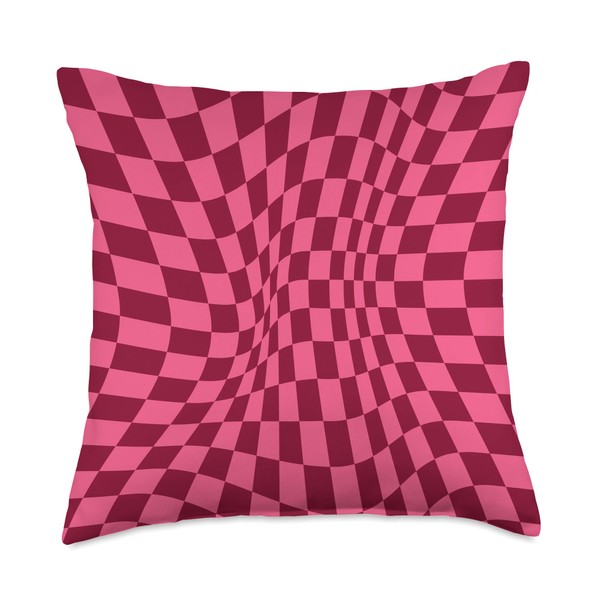Pink and Red Twisted Checkered Trippy Swirl Checkerboard Throw Pillow