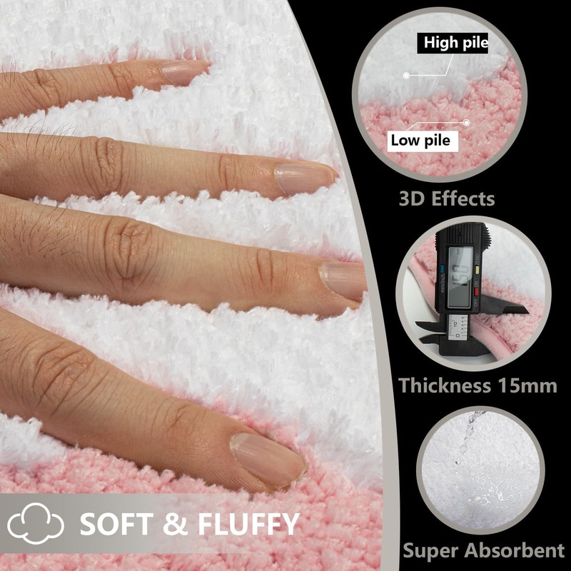 - High Quality Material: This bathroom rugs is made of high quality microfiber,bath rugs for tub especially soft and thick microfibers relieve pressure of your feet after a whole day work,absorbent bath mat gives you a comfortable and warm feeling.The shower floor mat is extremely soft and absorbent, its microfiber is thick and tall,suitable for daily use as bath rug or boho bathroom decor.