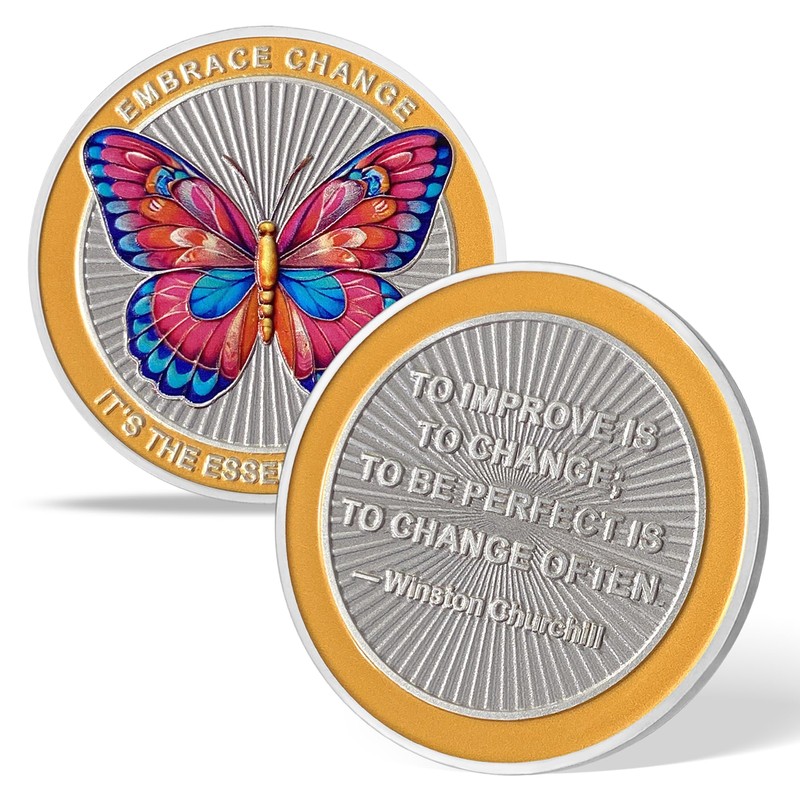 - 🌅Meaningful Back Design: The back of the coin is engraved with an inspirational quote in elegant gold lettering: "To Improve Is to Change; To Be Ideal Is to Change Often." This profound message serves as a daily reminder of the importance of continuous self-improvement and the ever-evolving journey of personal growth.