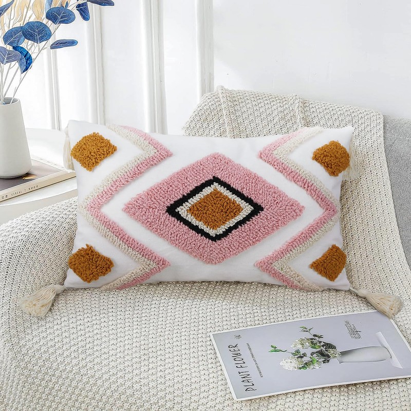 - 【Premium Fabric & Package】The fabric of these decorative pillow cover is super thick and durable, made of high-quality woven and cotton fabric.It has a single-sided pattern and the back is pure white. Package includes 1 piece boho pillow cover 12X20 inch. Pls kindly be noted that pillow cover only, inserts are not included.
