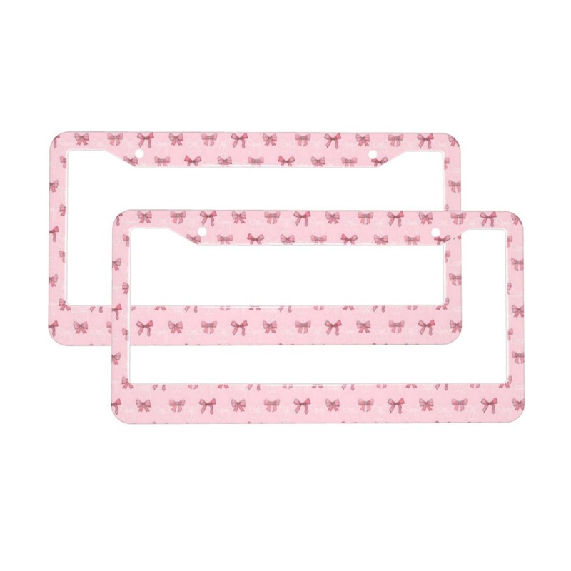 Pink Bow License Plate Frame 2 Pack, Universal Aluminum License Plate Holder Car Accessories with Screws for Women