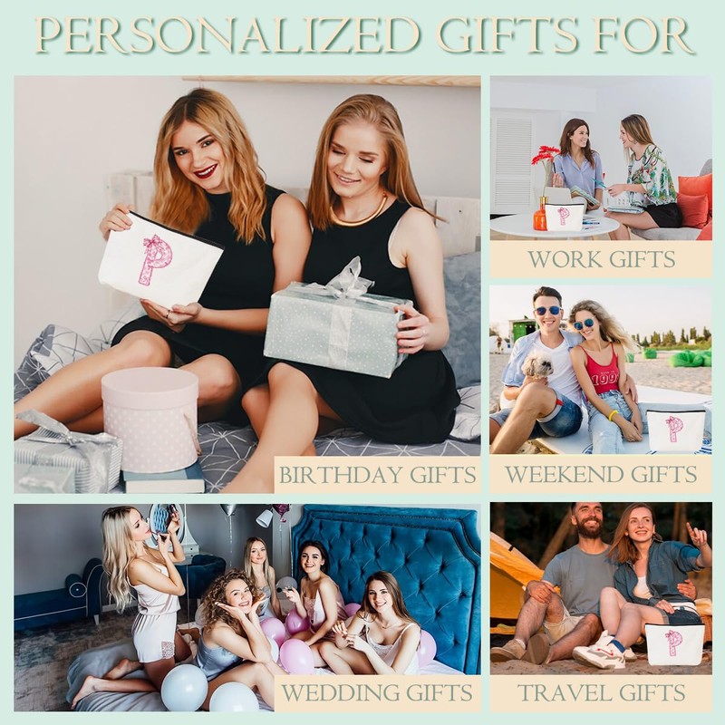 Pink Bow P, Alphabet Makeup Bag for Women, Washable Travel Organizer Toiletry Cosmetic Bag, Coquette Bow Letter Pattern Large Capacity Makeup Pouch with Zipper, Christmas Gifts for Women