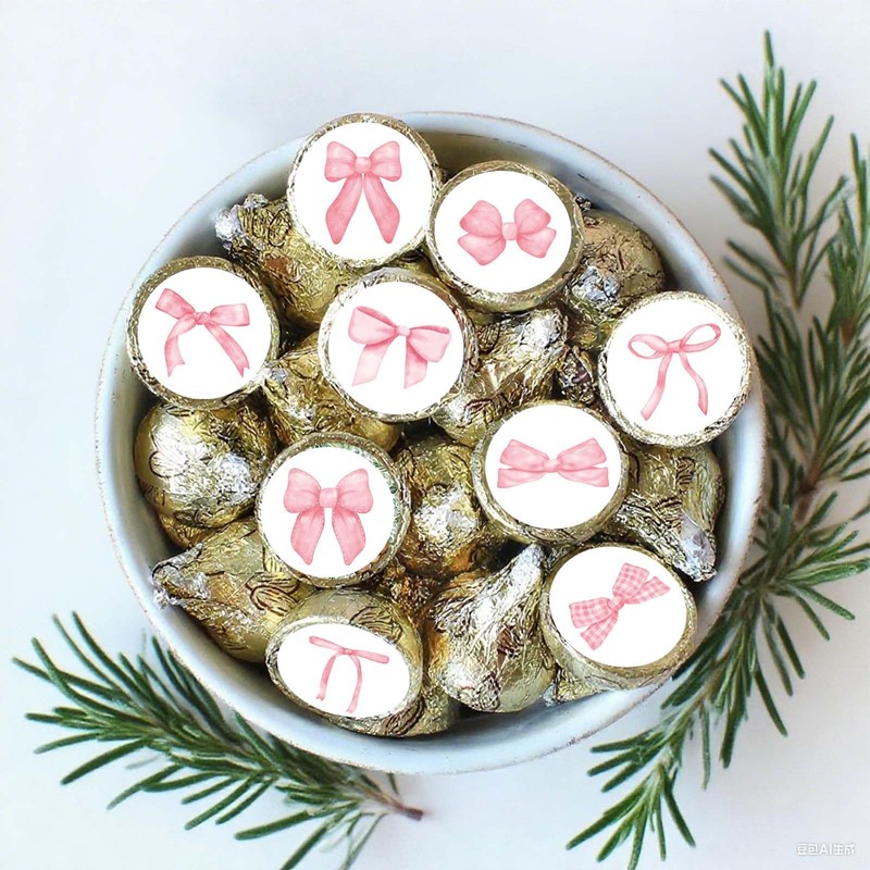 Pink Bow Party Favors Stickers, 450PCS Bowknot Chocolate Kisses Candy Stickers, Pink Bow for Baby Shower, Bridal Shower, Birthday Party Candy Labels