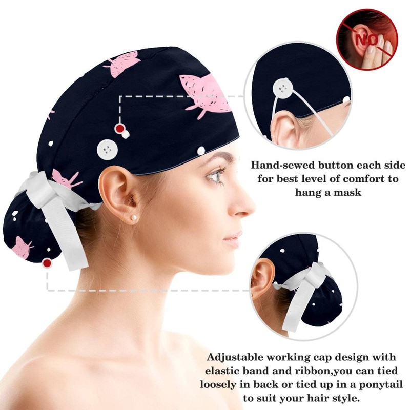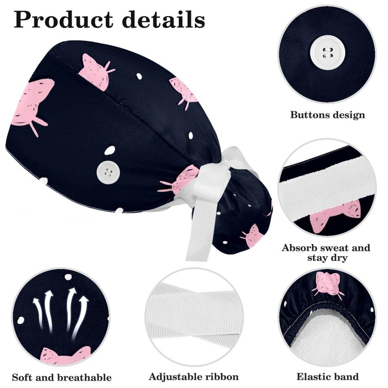 Pink Cats Scrub Cap, Adjustable Working Cap with Button, Bouffant Caps with B...