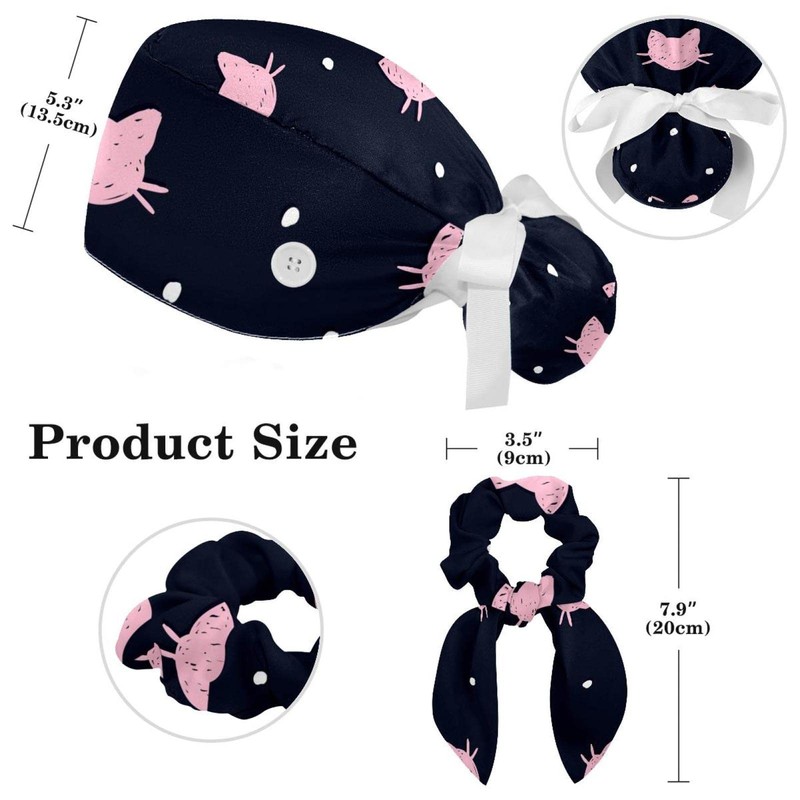 • Cute Printed Working Cap - 1 Pieces fashion working hats and 1 pcs bow hair scrunchies included. Each bouffant hat is printed with beautiful patterns, very eye-catching and functional; make your work time happier and used as a fashionable accessory to complement your everyday outfits.