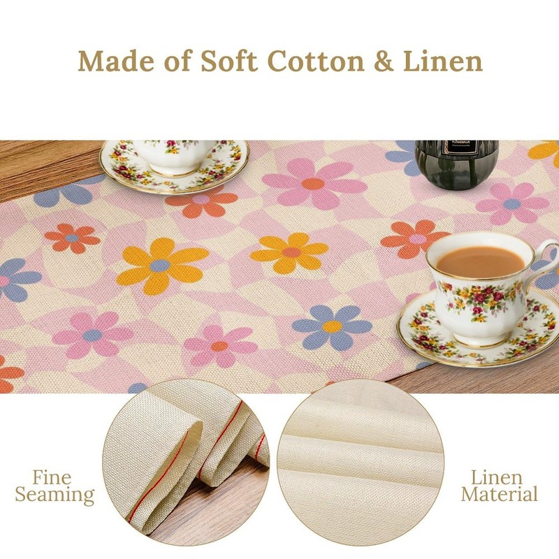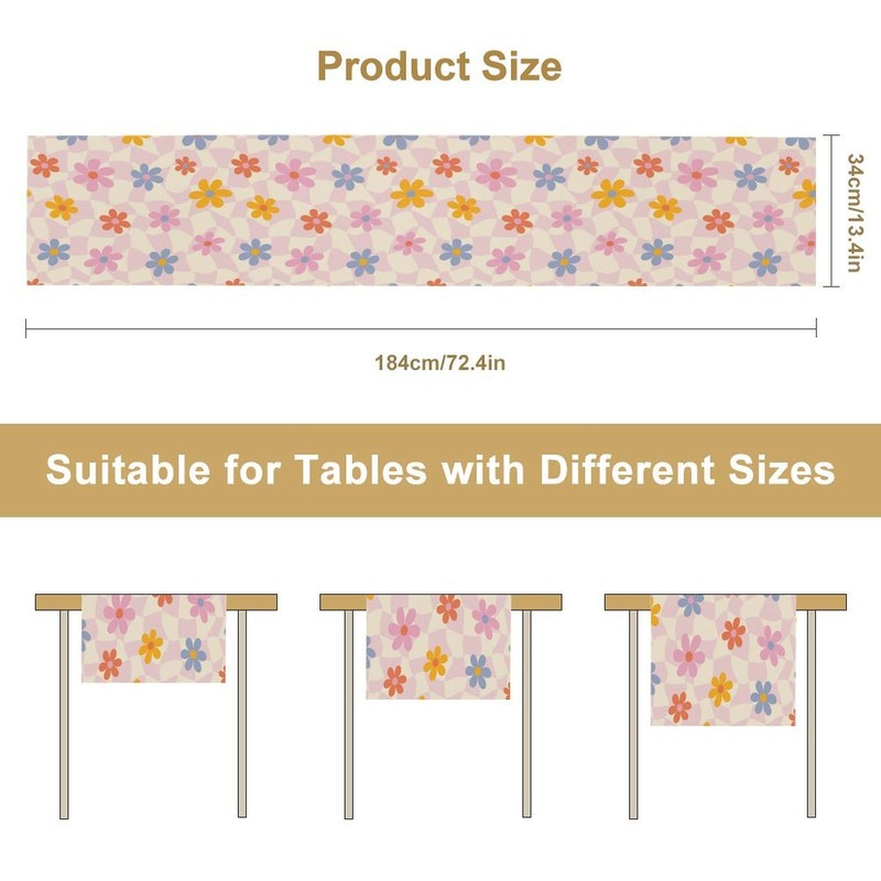 Pink Checkered Table Runner, Cute 70s Modern Flower Aesthetic Funky Hippie Colorful Abstract Table Runner for Dining Kitchen Party Holiday 13x90in