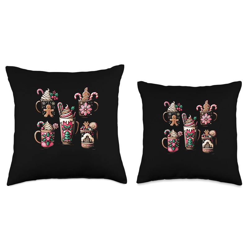 Pink Christmas Cookie Gingerbread Man Baker Latte Lover Throw Pillow