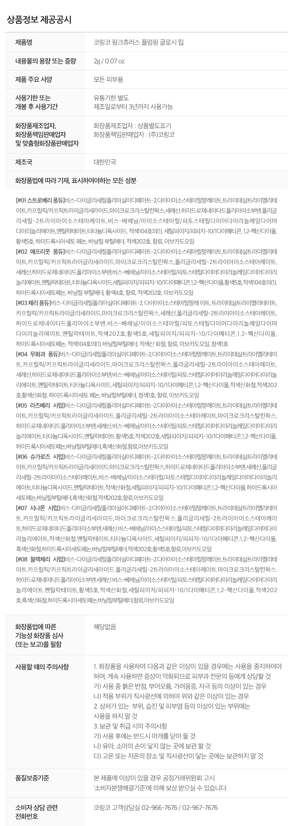 핑크츄러스 플럼핑 글로시 립 8color