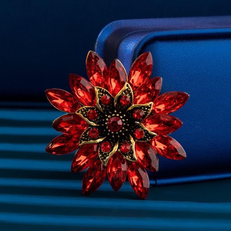 - Crystal Diamond Flower Brooch: This dazzling piece features a Sparkling Pink Rhinestone floral design with hand-set crystals that create brilliant light refraction The Gold Flower setting adds luxurious warmth to every sparkle