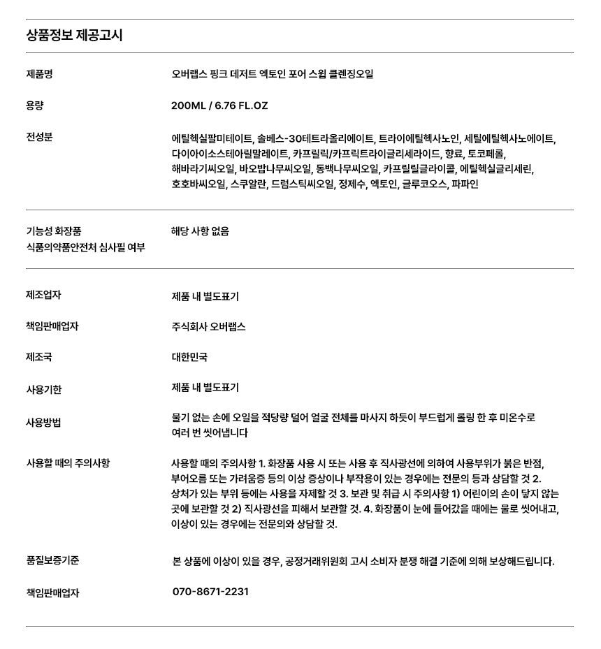 핑크 데저트 엑토인 모공 스윕 저자극 클렌징 오일