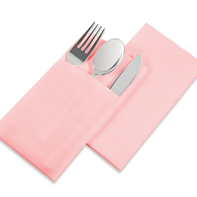 Pink Dinner Napkins Disposable - 50Pack Linen-Feel Paper Napkins with Built-in Flatware Pocket, Prefolded Cloth Like Paper Napkins Bulk For Dinner, Wedding, Party or Everyday Use(Pink)