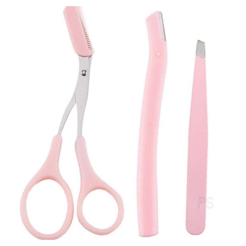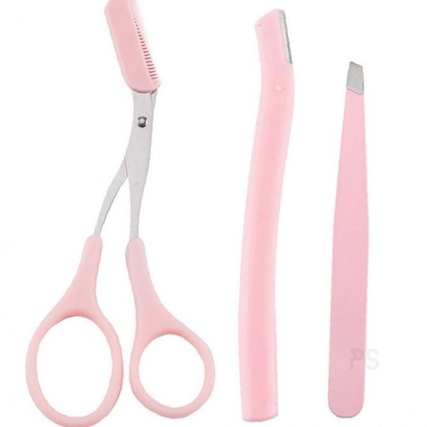 Pink Eyebrow Grooming 3-Piece Set Stray Eyebrow Hairs 2ea